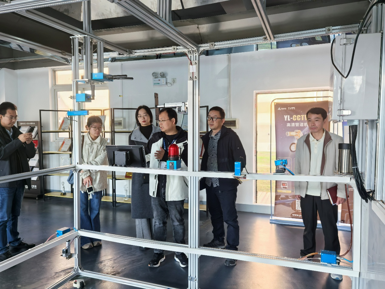 活动伊始,中安集团企业负责人杨涛热情接待了学院代表一行,带领大家参观了集团一楼展览厅。展厅内陈列着各类先进的传感设备等仪器,涵盖工程安全监测领域的前沿技术产品。杨涛负责人现场操作演示,详细讲解了设备的工作原理、技术优势及在实际工程中的应用场景,让学院代表们直观感受到中安集团在工程安全监测技术研发与设备制造方面的雄厚实力。