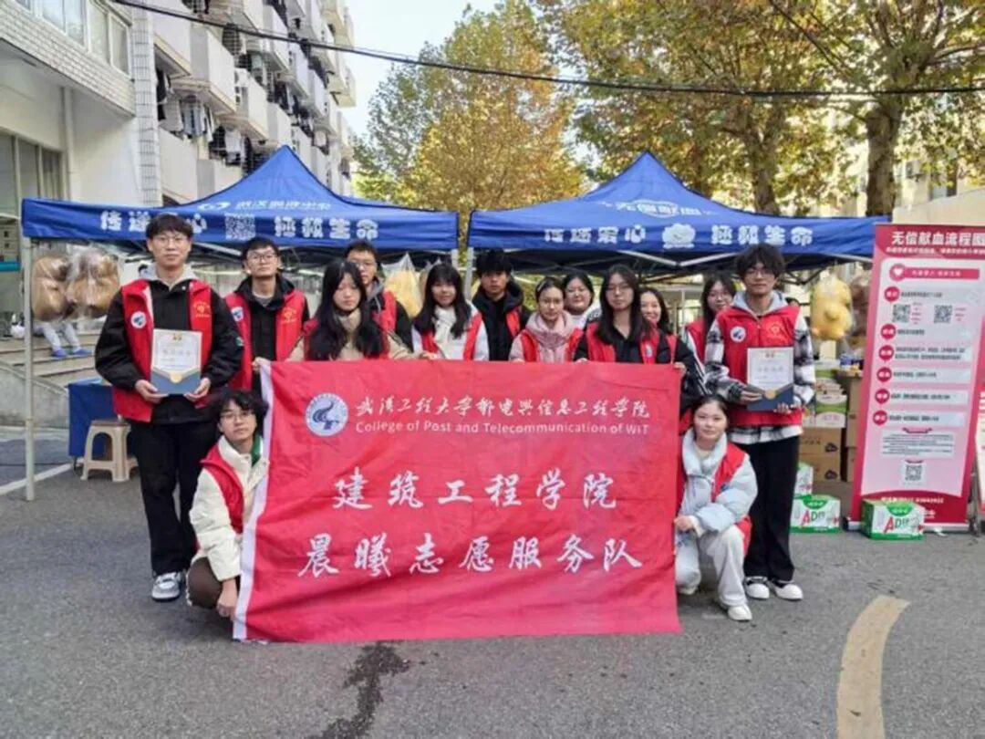 (通讯员 余思翰)为弘扬“奉献、友爱、互助、进步”的志愿精神,引导青年学生以实际行动践行社会责任与时代担当,2025年11月25日,工程大社区特邀武汉市献血中心献血车驶入校园,开展无偿献血公益活动。建筑工程学院晨曦志愿服务队组织20余名志愿者全程参与后勤保障工作,以专业细致的服务助力活动高效推进,其间更有多名志愿者受现场氛围感染主动献血,用热血诠释青春担当。